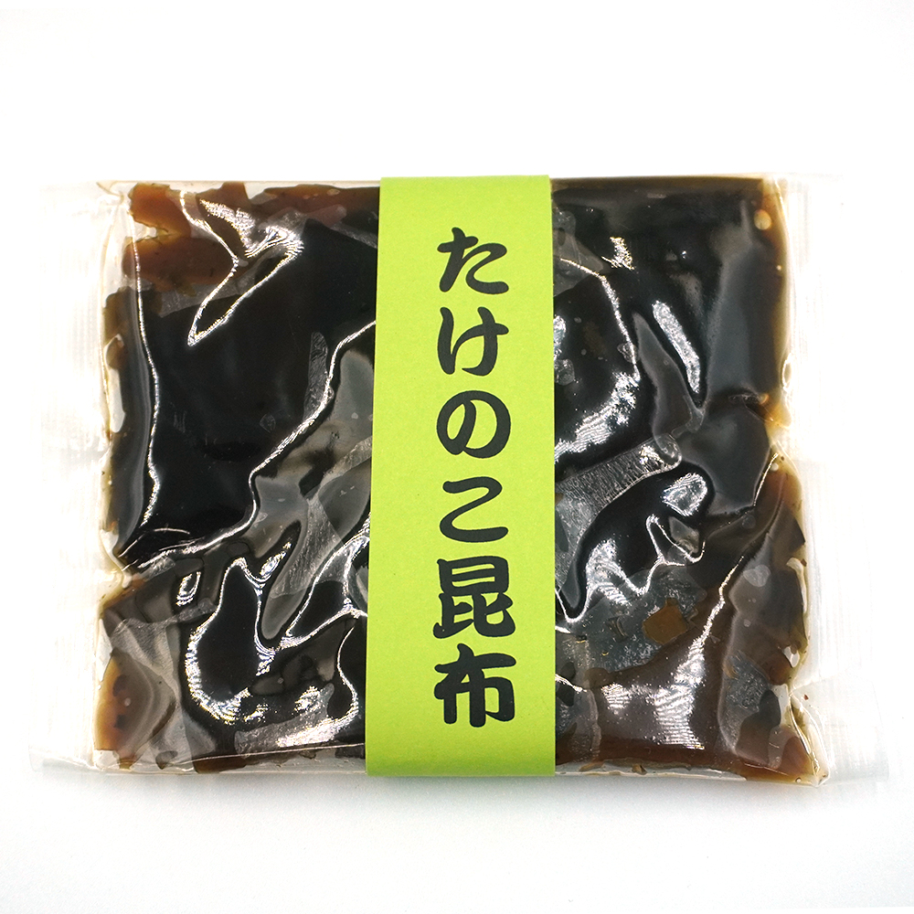 | 原材料 | 昆布(国産・中国産)(国内製造)、醤油、筍、砂糖、還元水飴、椎茸、醗酵調味液、山椒の実、椎茸調味液、鰹節調味液、寒天、調味料(アミノ酸等)、pH調整剤、保存料(ソルビン酸K)、増粘剤(キサンタンガム)、(一部に小麦・大豆を含む) |